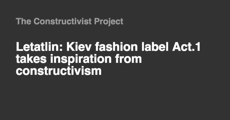 Kiev-based fashion brand Act.1 has released Letatlin, a collection inspired by the Soviet avant-garde and, in particular, the work of Constructivist pioneer Vladimir Tatlin.