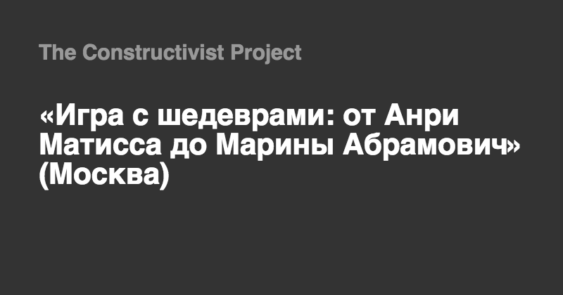 Еврейский музей и центр толерантности представляет выставку «Игра с шедеврами: от Анри Матисса до Марины Абрамович». Выставка покажет шедевры модернизма и современного искусства – от кубизма до видеоарта. Ядро экспозиции составят работы зарубежных и отечественных художников: Казимира Малевича и Фрэнсиса Бэкона, Роя Лихтенштейна и Виктора Пивоварова, Натальи Гончаровой и Марины Абрамович, Альберто Джакометти и Бриджет Райли, Ансельма Кифера и Нико Пиросмани.