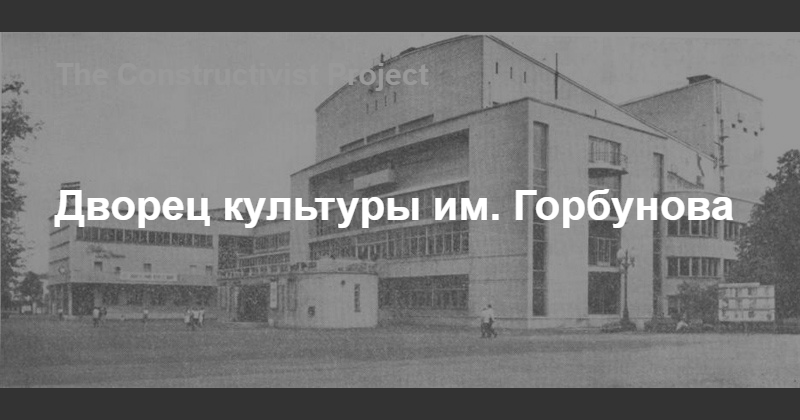 Построен в 1931-38 гг. в Филях при авиазаводе №22 (ныне ГКНПЦ им. Хруничева). Первый в Москве крупный Дворец культуры с развитым составом помещений. По своей структуре и многим деталям напоминает ДК ЗИЛ, строился примерно в то же время, но проект более ранний, относится к 1929 году и компоновка частей здесь другая. Другое название - Дворец культуры Киевского района. В 1933 году Дворцу присвоено имя погибшего в авиакатастрофе директора авиазавода С. П. Горбунова.